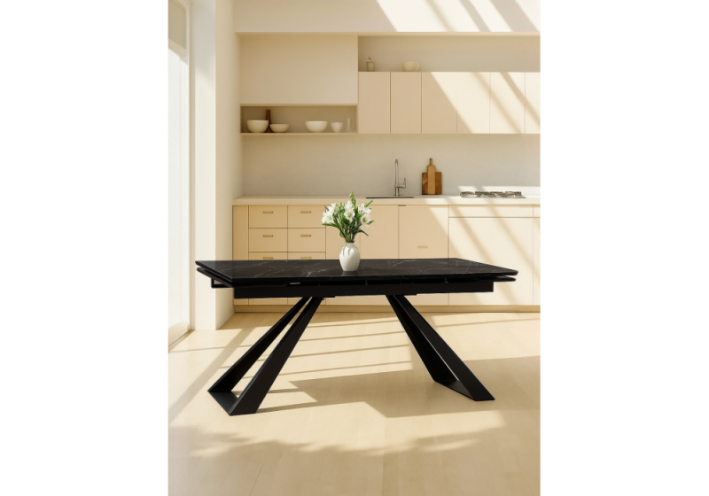 Стол стеклянный Маккарти 160(220)х90х75 дарк / черный (90x75)