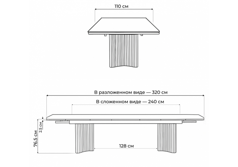 Стол стеклянный Мален 240x110 дарк / черный (110x76,5).