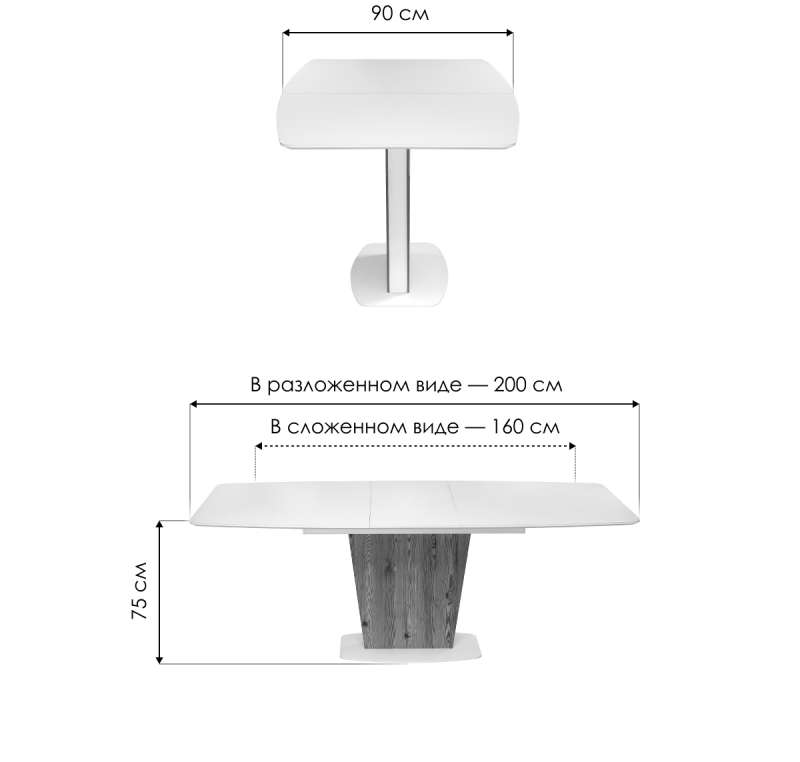 Длина стола в разложенном виде: 200 см.