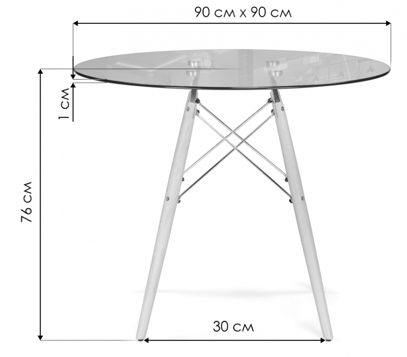 Толщина столешницы: 1 см. Расстояние между ножками: 30 см.