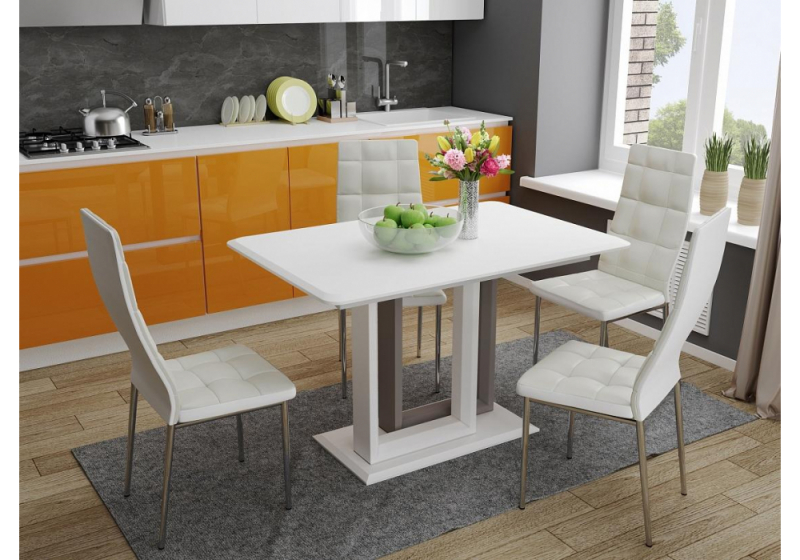 Стол стеклянный Санса белый / белая шагрень (80x76).