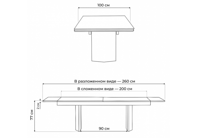 Расстояние между ножками: 90 см. Толщина столешницы: 2 см.