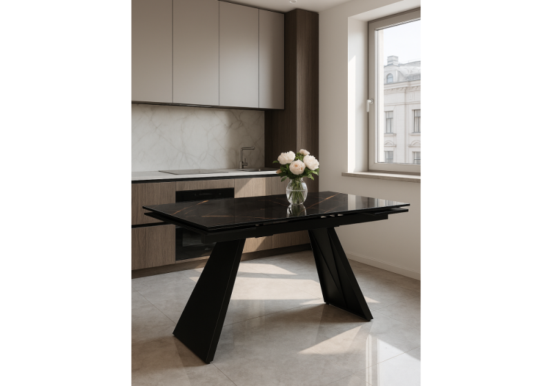 Стол стеклянный Хорсборо 140(200)х80х79 обсидиан / черный (80x79).