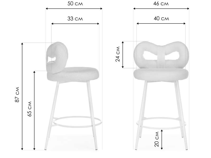 Высота спинки: 24 см. Высота подножки: 20 см.