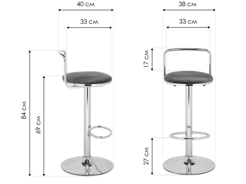 Высота спинки: 17 см. Высота подножки: 27 см.