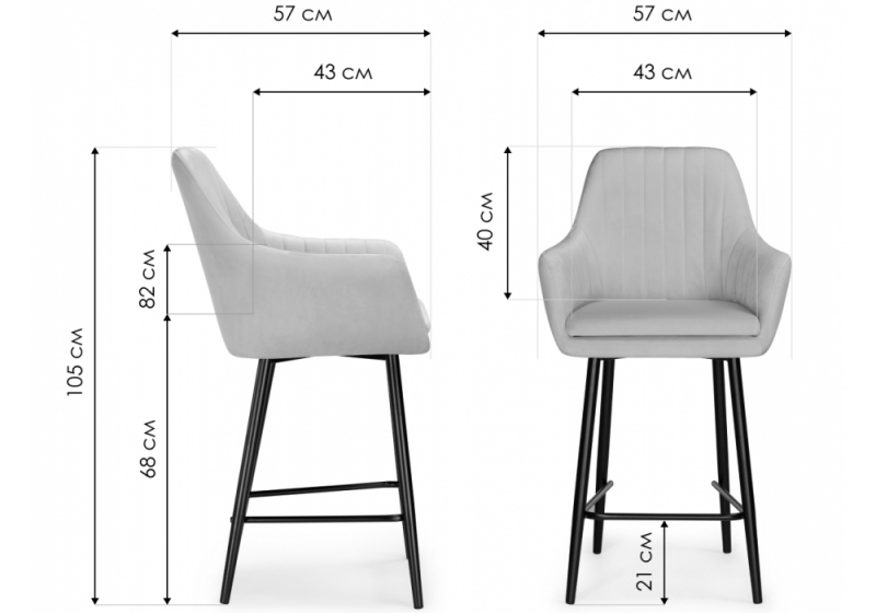 Высота подножки: 21 см. Высота подлокотников: 82 см.