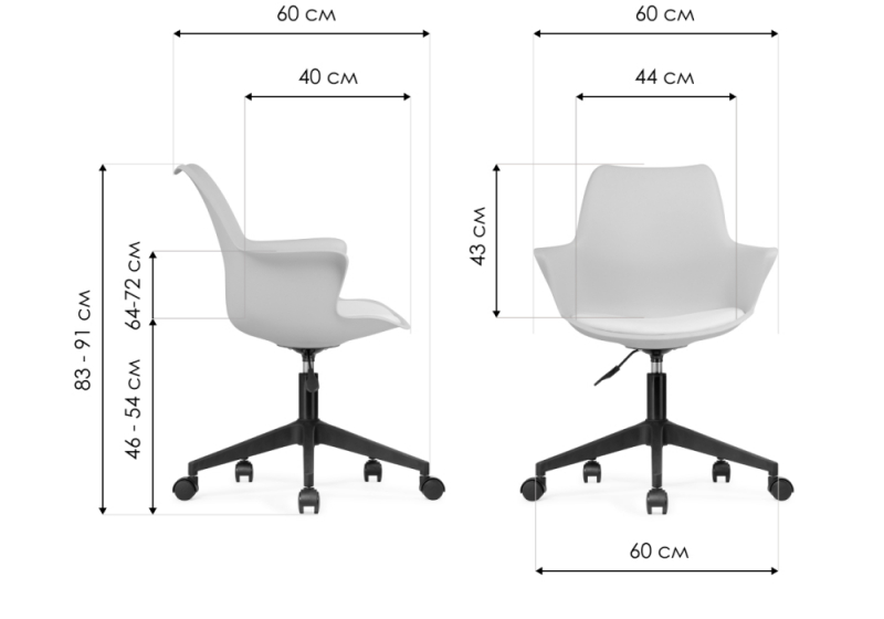 Высота подлокотников: 64 - 72 см. Диаметр крестовины: 60 см.