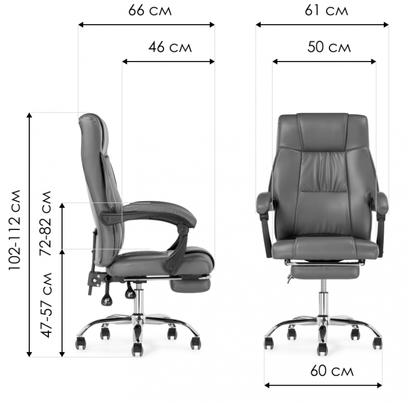 Высота подлокотников: 72 - 82 см. Диаметр крестовины: 60 см.