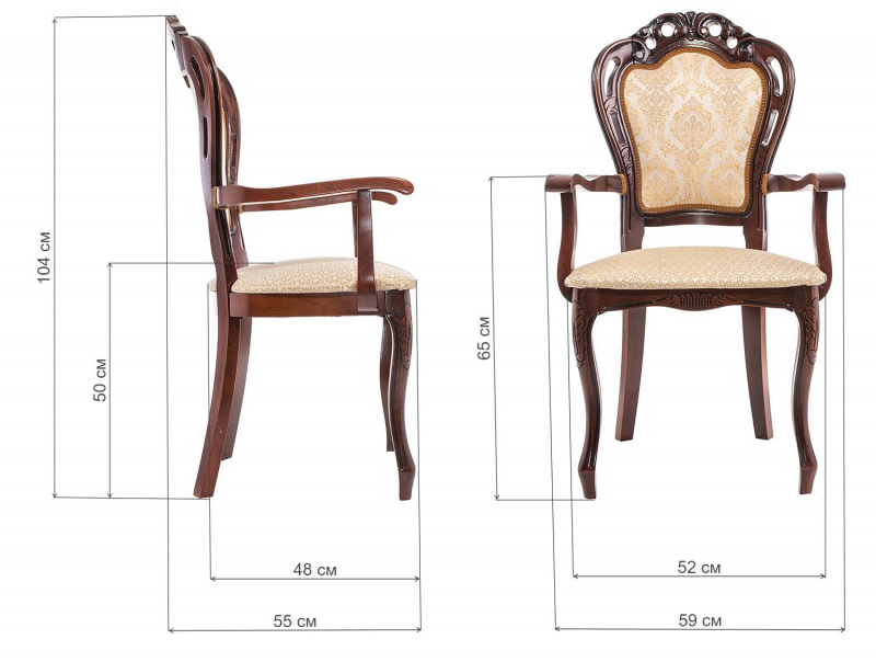 Стул деревянный Bronte вишня с патиной / бежевый (59x55x48)