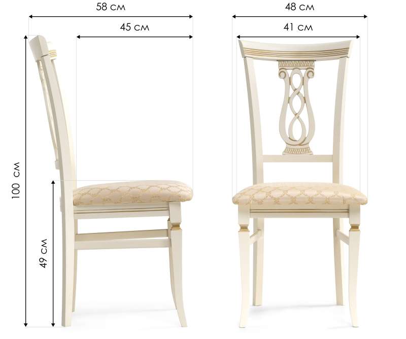 Стул деревянный Флавиан слоновая кость / золото (48x58x100)