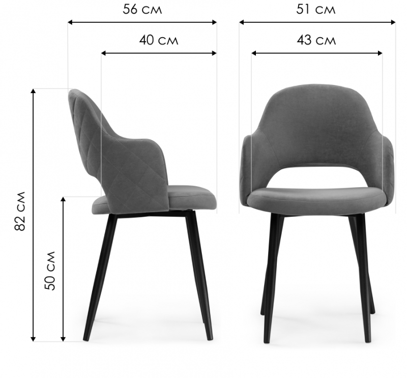 Стул на металлокаркасе Гутрид прошивка ромбы сзади темно-серый / черный (51x56x82).