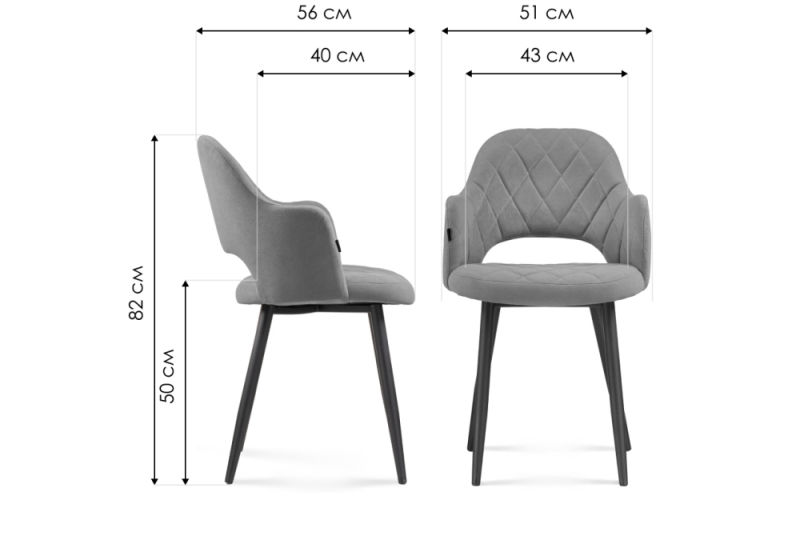 Стул на металлокаркасе Гутрид ромбы спереди серый / черный (51x56x82)