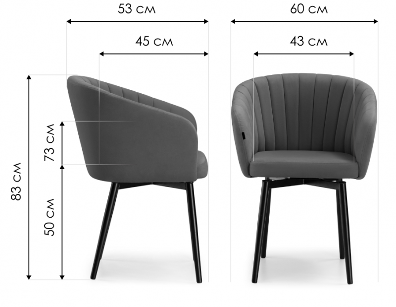 Стул на металлокаркасе Моншау черный / velutto 32 (60x53x83).