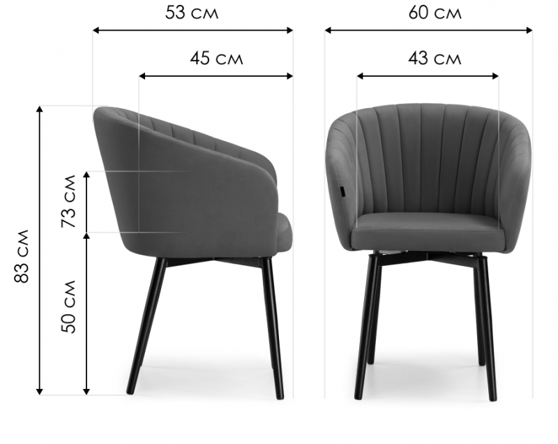 Стул на металлокаркасе Моншау крутящийся черный / velutto 49 (60x53x83)