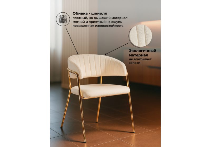 Стул на металлокаркасе Kamelia белый / ткань золотые ножки.