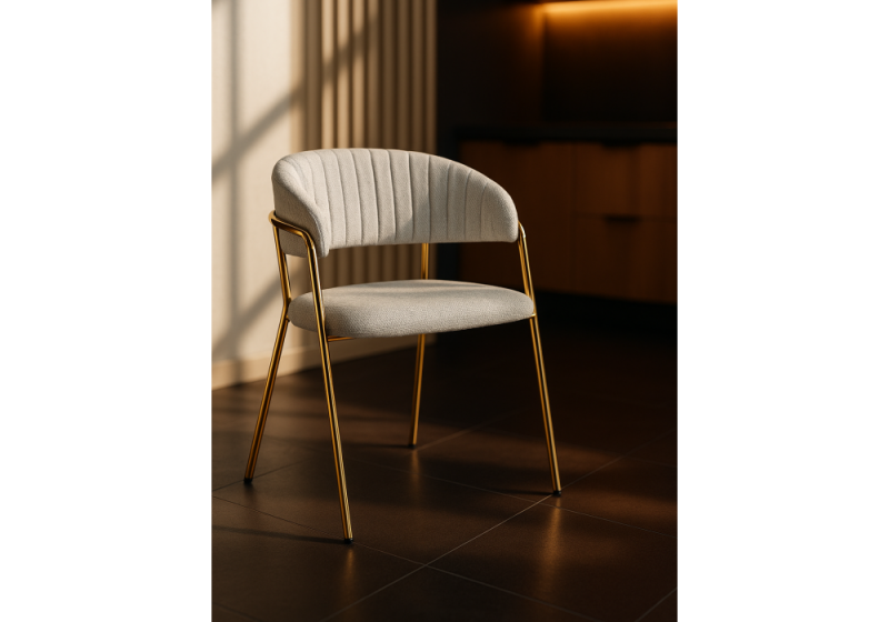 Стул на металлокаркасе Kamelia светло-серый / ткань золотые ножки (57x55x80).