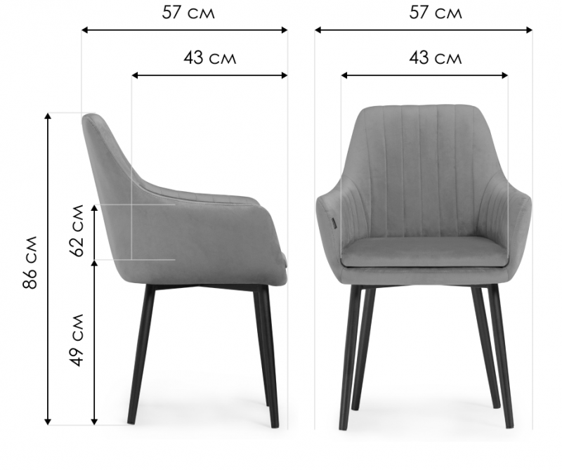 Высота подлокотников: 62 см.